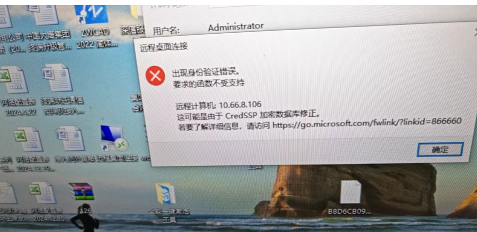 远程电脑报错:出现身份验证错误 要求的函数不受支持