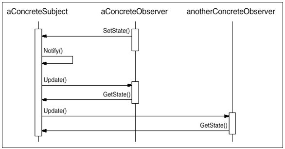 当新的报纸出现.发行商会通过信息告诉订阅者,最新的报纸已经发行了.请注意订阅.那么订阅者收到这个信息就会做出反应.或者订阅,然后进行一系列的活动(如:查询信息,剪报,给朋友讲解报纸新闻).也可以退订等.