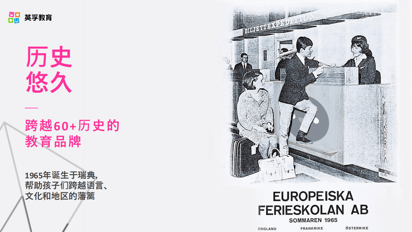 • 英孚教育自1965年创立于瑞典,是一家拥有超过60年国际教育实践经验的教育机构。自1997年进入中国以来,已覆盖50多个城市,拥有200多所学校,研发的青少儿分级课程,致力于培养孩子的语言能力、核心素养及全球视野。