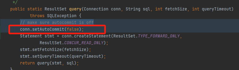 - MySQL/MyCat 在 setAutoCommit(false) 下,部分 SQL(尤其是大表全表扫描、分片表、只读节点等)可能会有兼容性或实现差异,导致 ResultSet 为空或行为异常。