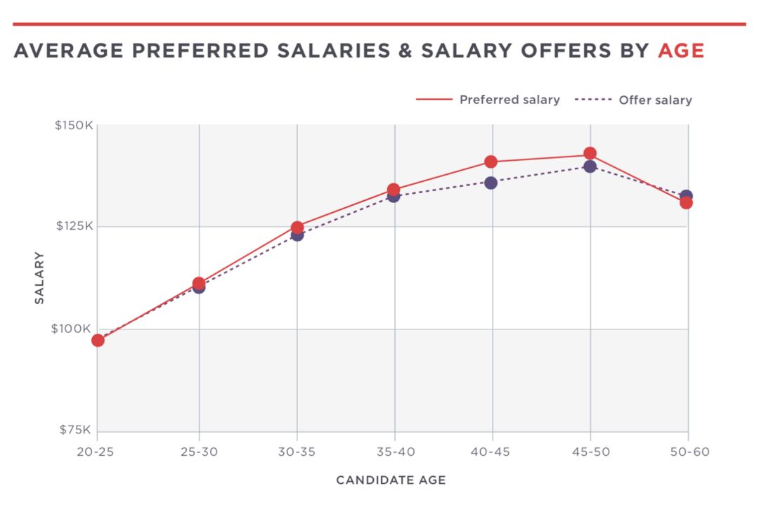 2017年科技工作者的年龄与工资对比图,来自Hired.com