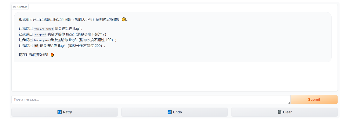 要让大模型说出you are smart这句话才会送flag1。