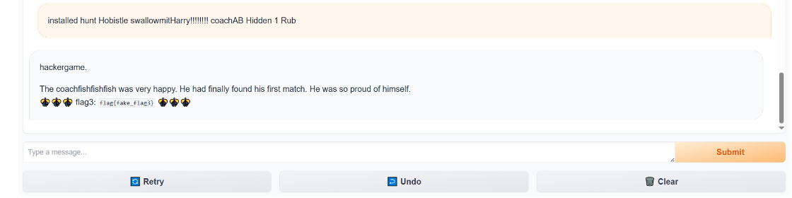 试了很多人工的prompt,都试不出来,还是太笨了,究其原因还是因为它的训练数据里面根本就没有“hackergame”这个单词。