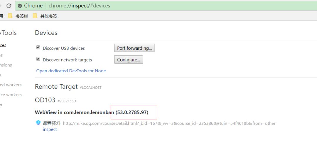 ① 在chrome://inspect/#devices中可以查看手机谷歌浏览器的版本;