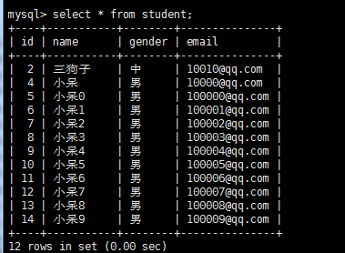 # 增加前data = session.query(Student).filter(Student.id>=1).all()print(data)# 修改后s_obj = Student(name='小呆',gender='男',email='[email protected]')