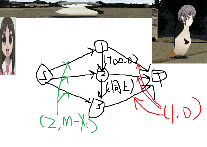 假设这是一个 \([S,j,i,S]\) 的环(符号乱用的),\(j\neq i\),那么代价为 \(+(m-x_j)-(m-x_i)\),即 \(x_i-x_j\)。反正是一样的吧。只用找没满流的 \((S,j)\) 就行了。
