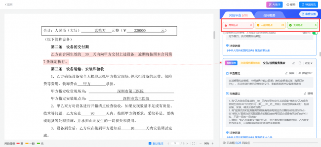 2. 风险等级三重划分,帮助法务人员快速定位重点问题