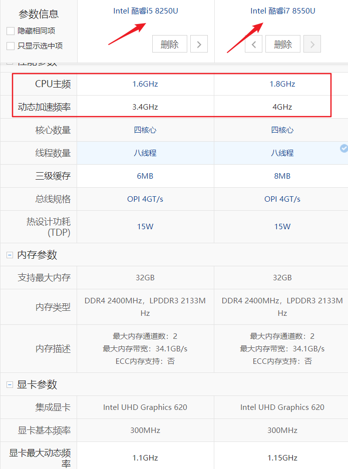 2、i5 8250u,i7 8550u比较