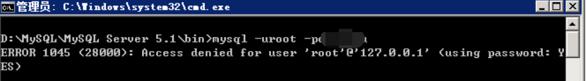 但是使用跳过授权表,重置了root的密码,然后登陆依然一直提示下面错误(其中-h127.0.0.1以及-hlocalhost等都测试过依然无法登陆)