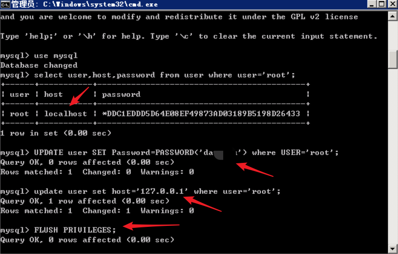 使用root用户通过主机127.0.0.1登录就可以正常进入mysql,127.0.0.1和localhost对mysql数据库来讲是不同的主机,