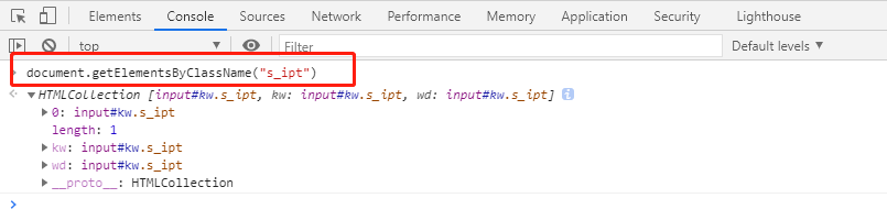 xpath需要在前面加入$x,后面跟xpath正常语法,语法: $x("//*[@id='xx']") 安静还是拿百度来举例,这里length=1表示只有一个元素符合我们输入的语法,也确保了我们的元素唯一性