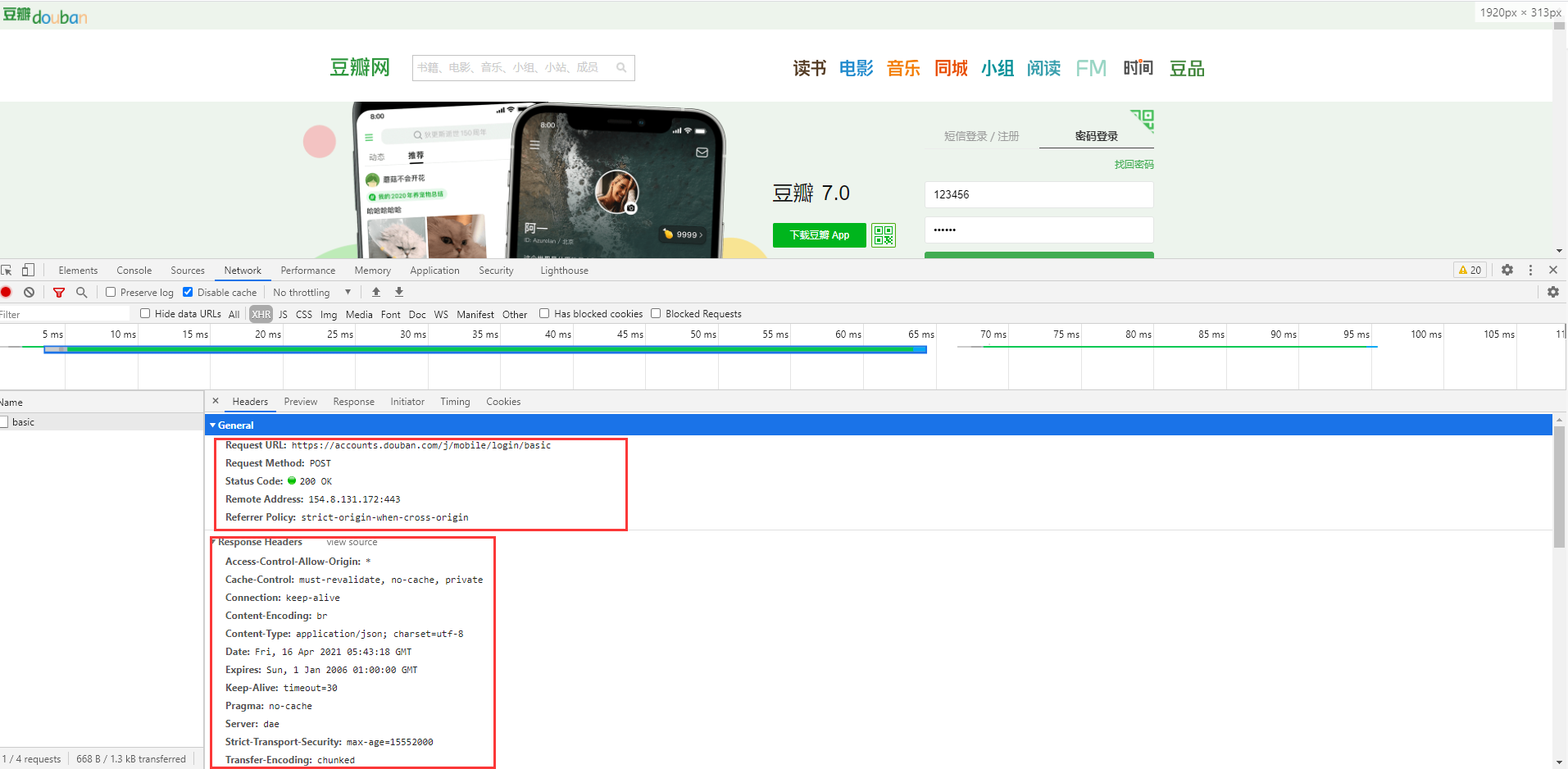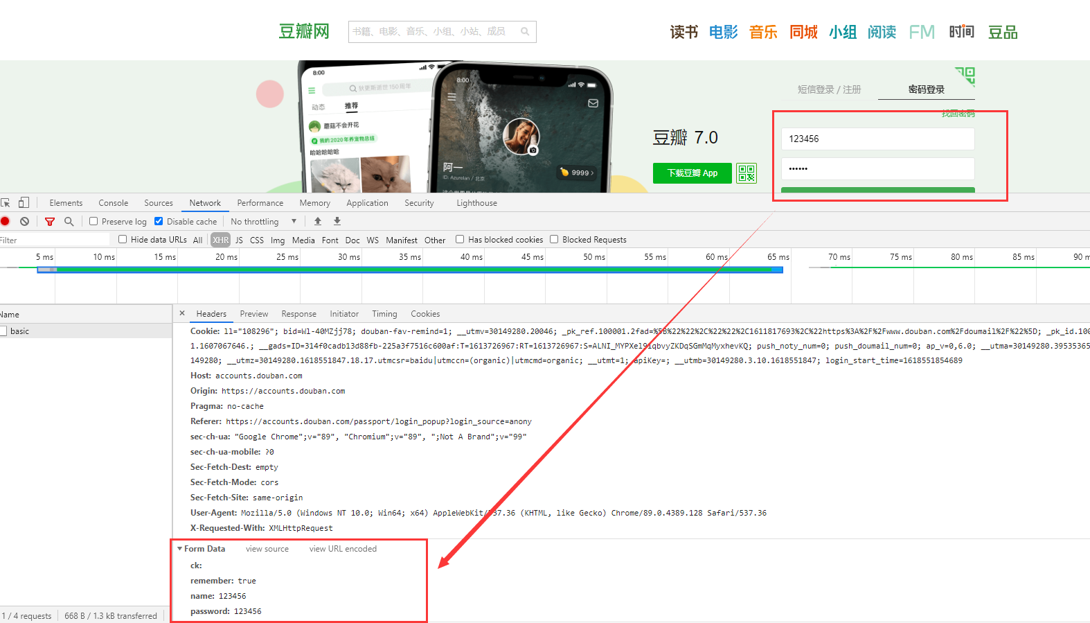 安静通过豆瓣网的登录来查看一些参数请求内容