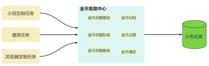 - 任务玩法多:金币玩法越来越多,定制化逻辑越来越复杂,单服务既要完成任务流转,也要完成金币流转,功能划分不够清晰,代码复杂度增高。