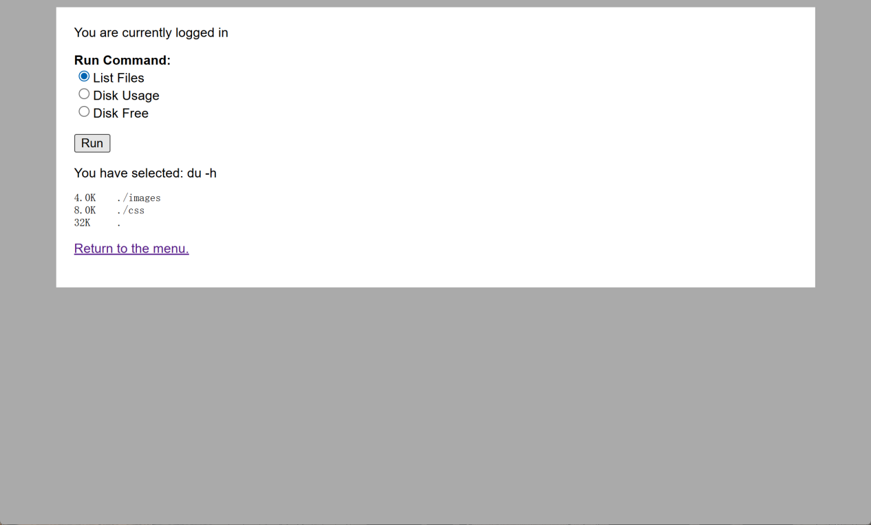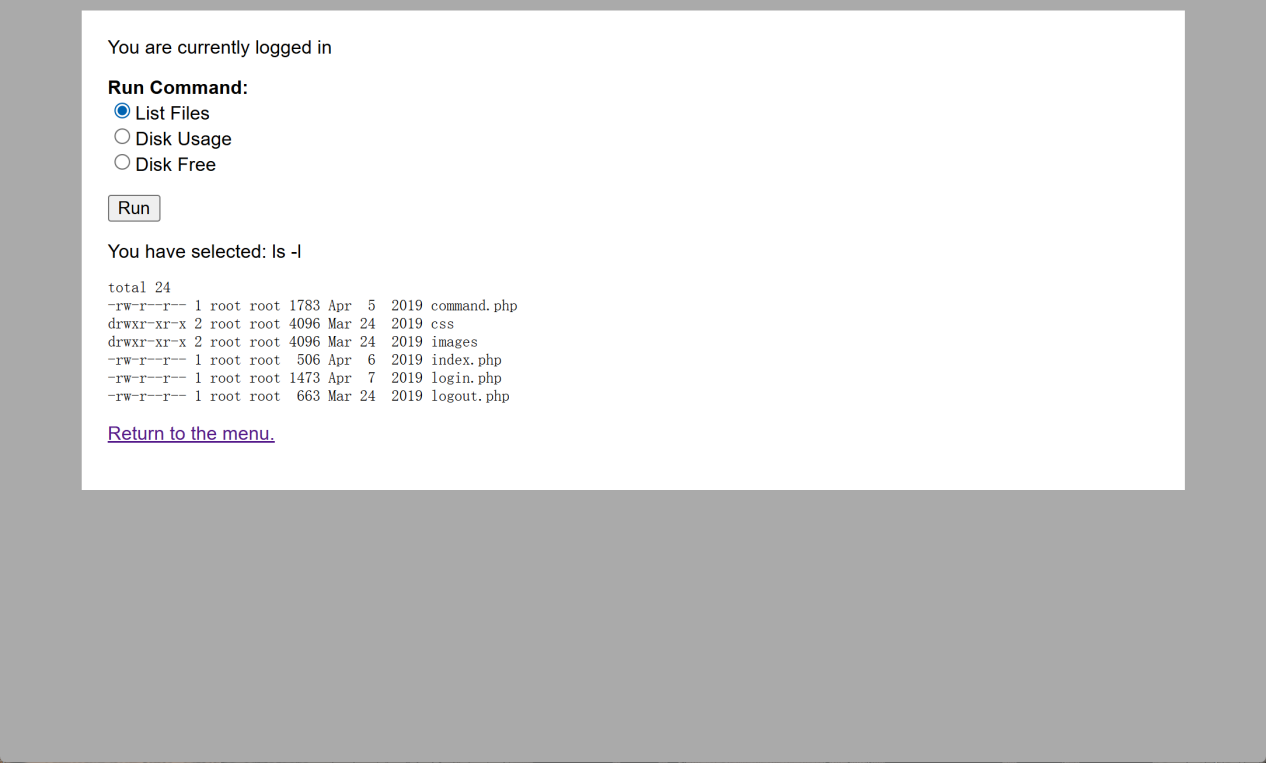 List Files:You have selected: ls -l