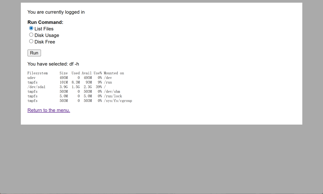 Disk Free:You have selected: df -h