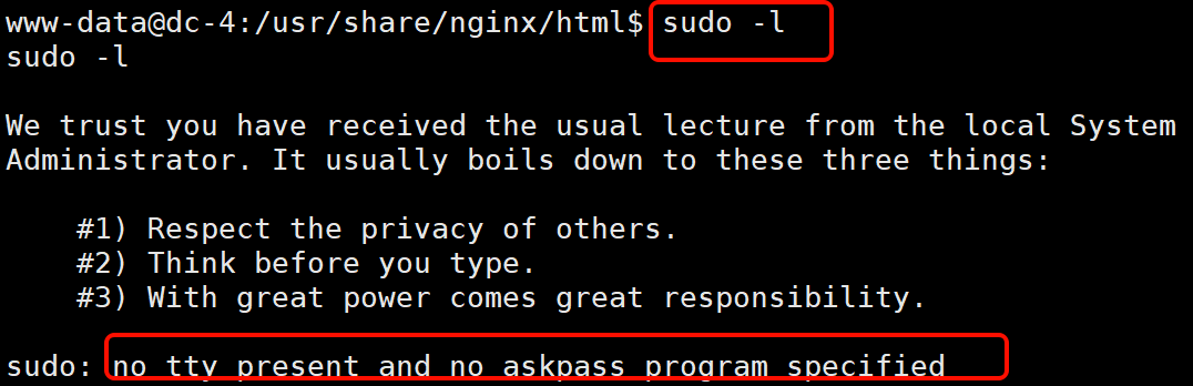 sudo -l 提示无 tty: