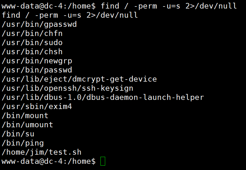 find / -perm -u=s 2>/dev/null