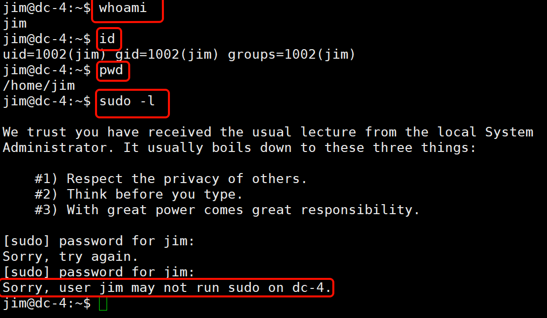 再次输入 sudo -l: