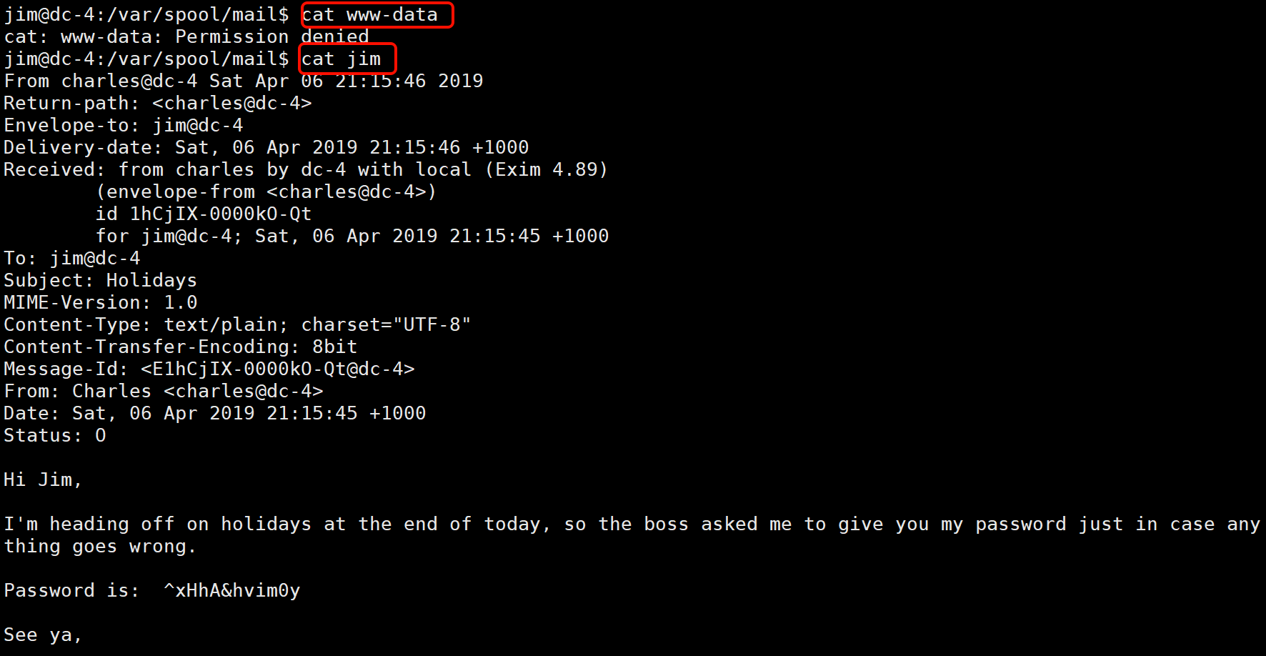 mail 里面有个 www-data 没权限看,只能看 jim: