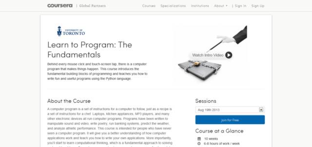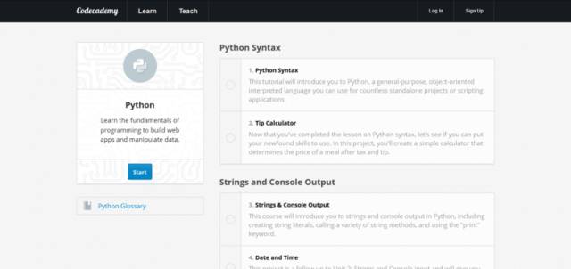 在这个Codecademy的课程中你将会学到如何使用文件和循环,什么是函数以及他们能用来做什么。这些都是非常基础的,但是对初学者来说都是很好的东西。当需要帮助时有一个用来交流的论坛,但所有的东西都应该在你理解的范围之内。