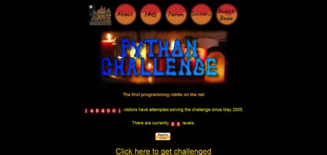 如果你的编程生涯中从没做过这样的挑战,这可能会有点难度。但是配和上面介绍的那本书的话也不是很难,你应该尝试一下。它有33个关卡(谜题),你可以用Python编程技巧解决。
