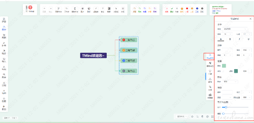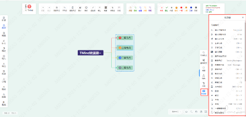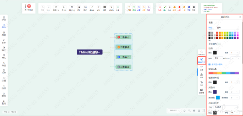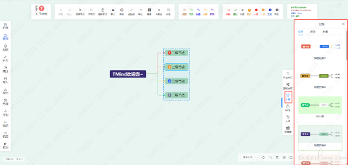 ●侧边栏:基础样式设置面板、节点样式设置面板、大纲面板、主题选择面板、结构选择面板